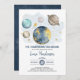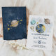 Celebre a chegada da sua pequena estrela com este convite de chá de fraldas mágico do espaço exterior. Apresentando planetas imaginários, luas e estrelas em azul-marinho e nas pistas douradas.