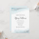 Cartão de modelo de convite para chá de fraldas de elegante com nuvens de cor-de-água ombre azul-bebê e brilho prateado falso na parte superior e inferior da placa. Este produto já tem textos que contêm todas as informações necessárias para o seu evento. Os textos são facilmente personalizáveis on-line. Design etéreo e capricho.