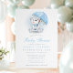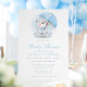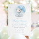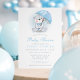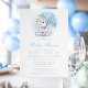 Bem-vindos a um pequeno com este adorável convite de chá de fraldas de urso guarda-chuva. Apresentando um urso aquoso segurando um guarda-chuva azul com sotaques de bolinhas macia, este convite é perfeito para um chá de fraldas com um tema fofo e aconchegante. Ideal para comemorar a chegada de um menino, esta design adiciona um toque caprichoso e gentil às festividades, fazer que seja uma escolha encantadora para os futuros pais.