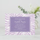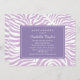 O convite para chás de fraldas moderno e na moda apresenta faixas de zebra sofisticadas e uma paleta colorida de roxo ametista, violeta lavanda e branco.