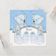 Ursos azuis adoráveis, garrafas de bebês e botas para bebês e convites para duches de bebês. Que fofo! Adicione os seus detalhes à frente e/ou atrás adicionando os detalhes do evento, estilo da fonte, tamanho da fonte e cor e texto.