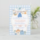 EDITABLE Fall Pumpkin Baby Clothes Blue Gingham Chá de fraldas Convite Russo Elegante Pumpkin Bebê Clothesline Novo Convite Para Bebê