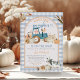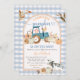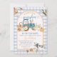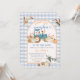 EDITABLE Fall Sweet Little Pumpkin Blue Gingham Chá de fraldas Convite à Criação Elegante de Trator Azul Explorações de Animais de Outono Festa de Chá de fraldas