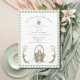 Um delicado e charmoso convite para chás de fraldas, com uma paleta de pastel macio com uma armação de gingham verde. O design incorpora doces ilustrações de sotaques de conto de fadas em verdes e vinhas varridas. O design também tem tons suaves de rosa azul-esbranquiçado, verde-sábio. Flores brancas e verdes cercam o doce gráfico animal dando a ele um toque elegante, mas lúdico. Perfeito por receber qualquer bebê do gênero.