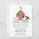 Este belo e moderno convite de chá de fraldas "oink, moo, cock-a-doodle do", neutro em termos de gênero, apresenta um porco, galinha e vaca com um celeiro vermelho em fundo branco. O verso apresenta um fundo branco com xadrezes de búfalos pretos/verificações de gingham. Personalize para suas necessidades. Você pode encontrar produtos correspondentes na minha loja.