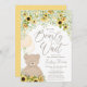Um modelo de chá de fraldas de ursinho de girassol fofo. Design apresenta girassol amarelo-aquarela e verde, com balões e uma ilustração de ursos-peludos. Perfeito para um chá de fraldas neutro em termos de gênero. Também trabalha chá de fraldas temático de verão excelente para um menino ou menina.