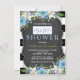 Bonito convite para chá de fraldas de giz preto-e-branco-azul-floral. Você pode personalizar facilmente este convite de chá de fraldas de quadro de referência de faixa azul e preta adicionando seus detalhes de evento no estilo de fonte e cor, texto, layout etc., de sua escolha.