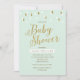 Douradas gotas de chuva com brilho e convites para chuveiros de bebês verdes. Você pode excluir a fita branca.