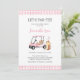 Prepare-se para comemorar em estilo com este Chá de fraldas de Golfe! Perfeito para um chá de temas cor-de-rosa, este design apresenta um carrinho de golfe bonito, um saco de paus, e um charmoso padrão de gingham rosa para um toque feminino. Perfeito por homenagear uma garotinha no caminho, este convite é um buraco-em-um para uma celebração única e divertida! BBS752