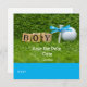 Este convite para o chá de fraldas temático de golfe apresenta uma fita azul e uma bola de golfe em fundo verde. É perfeito para um chá de bebê.