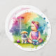 O chá de fraldas da garota tematizada de golfe de disco é convidado por uma bonito aquarela, um campo de golfe temido, uma menina e um cachorro em rosa, laranja, azul e verde.