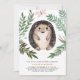 Convide a família e os amigos com este belo convite para chás de fraldas. Apresenta um adorável ouriço de aquarela com verde, flores e borboletas. Este convite é totalmente editável para qualquer evento. Personalize adicionando o evento, nome, data, hora, endereço e outros detalhes. Perfeito para eventos de verão e outono.