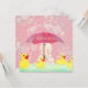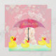 Um tema de chá de uma menina bebezinha de borracha de brinquedo vintage apresenta um lindo, de olhos azuis, bebê com um guarda-chuva vermelho alegre. A menina se senta entre um bando de patos de borracha amarelos em um borrão de corações pastéis e chuva suave. Disponível em um tema cor-de-rosa ou azul ou neutro junto com uma adorável coleção de decorações de chás de fraldas, jogos de chá de fraldas e favores de chá de fraldas para uma celebração original de boas-vindas.