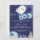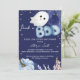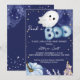 Pequeno boo Halloween, fofo bebê fantasma de abóbora chá de fraldas convite para modelo instantâneo. Um bebê fofo abóbora, velas de cor d'água fantasma em um fundo escuro de noite estrelada para o chá de fraldas do Halloween.
