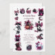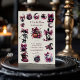 Um convite ousado e brincalhão para o chá de fraldas de Halloween. Esta design apresenta motivos góticos como esqueletos, gatos assustadores e garrafas de veneno — todos amolecidos com arcos cor-de-rosa vibrantes e sotaques bonitos. Ideal para um chá de menina em outubro ou qualquer celebração feiticeira. Totalmente personalizável com seus detalhes.