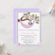 Este convite para o chá de fraldas apresenta uma doce bebê recém-nascida com cabelo preto, uma banda de cabelos com arco deitada numa rede e pendurada numa árvore Magnolia. Este é um convite de chá de fraldas único para qualquer mãe que esteja à espera ser empolgada!