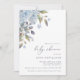 Convites Chá de fraldas de Hydrangeas Azuis e Caligrafia