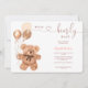 A ilustração do ursinho branco e bonitinho e com balões de ouro neutros chá de fraldas convite com uma tipografia de fontes elegante, dizendo que podemos esperar muito. Chá de fraldas perfeito e neutro em termos de gênero.