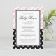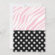 Estes sofisticados e na moda com dois lados convites para Baby Shower são projetados com bolinhas brancas padrão sobre preto e um padrão de impressão zebra rosa. Escolha seu tipo de papel. Linen seria uma escolha perfeitamente elegante para esta design. O texto é personalizável e muito descritivo e adequado.