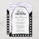 Na moda e convites exclusivos de impressão zebra Baby Shower com um design dividido com um padrão de listras zebra roxa e branca numa parte, um padrão de bolinhas preto e branco na outra parte e personalizado impresso com detalhes de celebração.