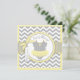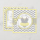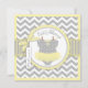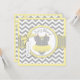 Ponta de jumper impressão de bolinhas de doce na linha de clothesline e arco 3D e fita para uma placa de convite para chá de fraldas de menina. As cores são amarelos e cinza.
