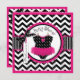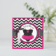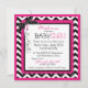 impressão chic chic black and white chevron com tutu de jumper de impressão bolinhas no clothesline e arco 3D e faixa para uma placa de convite para chá de fraldas de menina. As cores são pretas, brancas e rosa quente.