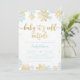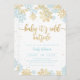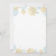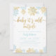 Cartão de convite para chás de fraldas moderno com gráficos dos flocos de neve azul e dourados de inverno com o texto diz "Bebê é frio lá fora."