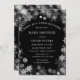 Escolha perfeita para um chá de fraldas neutro em termos de gênero. O Elegante design de quadro preto e branco apresenta uma borda de floco de neve. Todo o texto é branco.