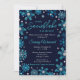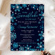 Este convite elegante e glamouroso apresenta flocos de neve com brilho azul-turquesa de cor aquosa e falso prateado e faíscas sobre fundo azul-marinho. É perfeito para um chá de fraldas temático de inverno ou Natal.