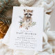 Convide convidados para comemorar as mamães a serem com estes adoráveis convites para bebês de inverno. O convite para o chá de fraldas de inverno apresenta uma ilustração aquosa de uma guaxinim rodeada de flores brancas de inverno, bagas vermelhas ocas e folhas verdes e exuberantes. Personalize os convites para o chá de bebê do raccoon do bebê com o nome da futura mãe e os detalhes do chá. A parte de trás do convite apresenta um buquê floral de inverno correspondente.