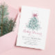 Celebre a chegada da sua garotinha com este charmoso convite de chá de fraldas de inverno. Apresentando uma árvore de Natal teal enfeitiçada com um delicado arco cor-de-rosa esbranquiçado e cercada por flocos de neve pastéis, este elegante design combina encanto festivo com um toque macio e coquetel. Perfeito por criar um chá de fraldas memorável de inverno com um sentimento caprichoso, mas sofisticado.