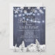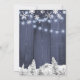 Chá de fraldas de inverno elegante, estilo russo-country, modelo com bordas de flocos brancos de neve, queda de neve, pinheiros maravilhados paisagem e cordas de luzes cintilantes sobre fundo azul de celeiro. Preencha suas informações nos pontos, Você pode optar por personalizá-las mudando ainda mais as fontes e as cores das letras. — O convite é adequado para montanhas elegantes no inverno rústico/festas de chá de fraldas de Natal. — Se precisar de assistência, por favor, entre em contato comigo!