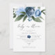 Este convite para chás de fraldas apresenta florais azuis empoeirados de cor d'água e um layout simples elegante. Este é o convite perfeito para o seu jardim ou chá de fraldas boêmico. Edite com facilidade o texto *maioria* para atender às necessidades do seu evento.