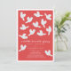 Este elegante convite para chás de fraldas apresenta um fundo vermelho com pombas brancas carregando um galho de oliveira. O verso apresenta um fundo verde escuro com padrões florais. Personalize-o para as suas necessidades. Você pode encontrar produtos correspondentes na minha loja.