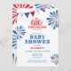 4 de julho de chá de fraldas. Pequeno Invício de Chá de fraldas Patriótico do Firecracker em fogos de artifício vermelho, branco e azul e patrióticos.