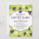 Convite para chá de fraldas de joaninha roxa, com insetos roxos com folhas verdes e flores roxas e pretas. Sacudir nosso convite para ver uma correspondência de volta para um toque especial extra. Perfeito para uma chá de fraldas de uma menina.