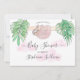 Bonita Menina, Chá de fraldas De Lama. Este charmoso convite para chás de fraldas apresenta uma doce preguiça bebê pendurada num galho, emoldurada com folhas verdes de cor d'água da selva e nuvens cor-de-rosa. O reverso é decorado com folhagem tropical, nuvem rosa e espaço para mais informações. Todo o texto é personalizável.