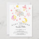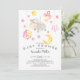 Adorável bebê móvel com um convite de chá de fraldas de ovelha super fofo. Sacudir nosso chá de fraldas convidar para ver uma coordenação de volta com estrelas rosa.