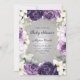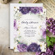 Chá de fraldas elegante com flores brancas bonito e roxas pintadas à mão e folhas verdes sábias acentuadas com brilho dourado. Personalizado com seu nome e todas as informações de seu partido. Contacte-me para obter assistência com as suas personalizações ou para solicitar produtos Zazzle adicionais correspondentes ao seu chá.