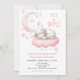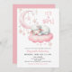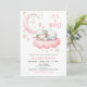 Pequeno Chá de fraldas rosa-borrego Convite com lua rosa e estrelas e um bebê-borrego rosa giro dormindo em uma nuvem rosa.