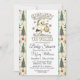 Um charmoso convite para chás de fraldas com um anúncio de Stork sobre um fundo festivo de inverno com árvores de abeto à espera de um pequeno floco de neve! Você pode personalizar este convite com seus próprios detalhes!