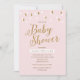 Douradas gotas de chuva com brilho e convites para chuveiros cor-de-rosa. Você pode excluir a fita branca.