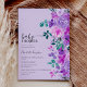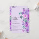 Chá de fraldas romântica de flores silvestres pastel de lavanda roxa-roxa com flores bonito do campo selvagem em roxo, lavanda e verde, com uma tipografia com script escovado sobre um fundo lavanda elegante e editável.
