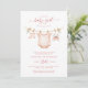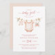 Celebrar a chegada de uma doce menina com este charmoso convite de chá de fraldas da linha de roupas. Com roupas de bebê de cor aquosa macia e um brinquedo de pelúcia pendurado numa corda com folhas de eucalipto, esta design estabelece um tom gentil e feminino. Perfeito para um chá de menina, combina tons suaves e estilo mínimo para uma sensação quente e acolhedora. Itens correspondentes disponíveis.