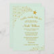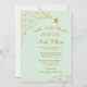 A casa e o dourado brilham... os convites para chuveiros de bebês. Apresentando estrelas douradas falsas em fundo verde da casa da moeda. Uma design de tendências para uma garota moderna ou chá de fraldas de menino. Designs são ilustrações/gráficos impressos planos - NÃO É UM GELO DOURADO REAL.