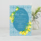Caligrafia russa Boho Script Mediterrâneo Azulejos Azuis Limão Citrus Verão Gênero Convite para Chás de fraldas Neutros