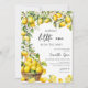 Celebre o seu pequeno com este novo e charmoso Convite para Chá de fraldas de Limão de Compressão Principal. Apresentando um belo cesto de limões pintado à mão, folhas verdes e sujas, e delicadas flores brancas, este convite é perfeito para um chá de fraldas inspirado nos citrinos de limão. Convide seus convidados para uma celebração brilhante e alegre com este novo e na moda convite. BBS995