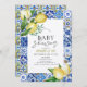 Convites Chá de fraldas de limão de Azulejo azul mediterrân
