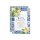 Este elegante convite para chás de fraldas apresenta um fundo branco com azulejos mediterrânicos azuis e limões/citrinos em aquarela. Personalize-o para as suas necessidades. Você pode encontrar produtos correspondentes na minha loja.