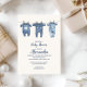 Este design encantador apresenta uma linha de tecido de aquarela pintada manualmente com roupas de bebê azul macio penduradas no fio. A paleta de inverno muda e o estilo minimalista criam uma sensação confortável e animadora — perfeita para celebrar um bebê com charme de eterno e elegância sazonal gentil.